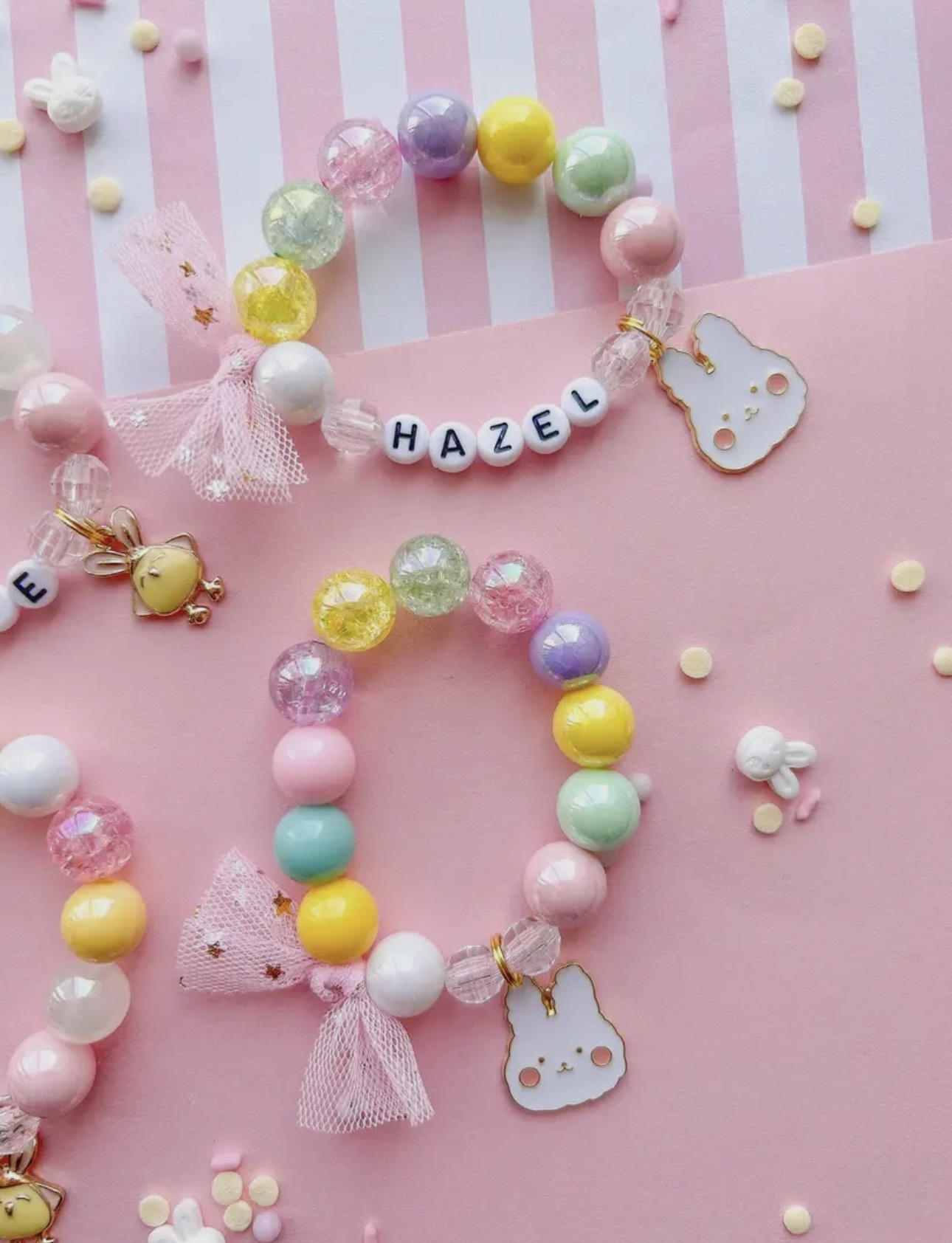 Bunny Rabbit Easter Beaded Charm Bracelet