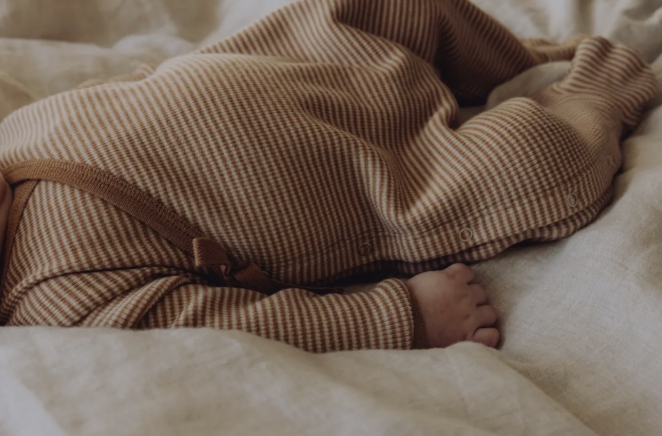 Baby footie made from our signature wool blend rib knit in timeless strap pattern. Snap and cross-over closure for easy dressing. Makes for a beautiful new baby gift. *70% merino wool- 30% bamboo, Oekotex certified