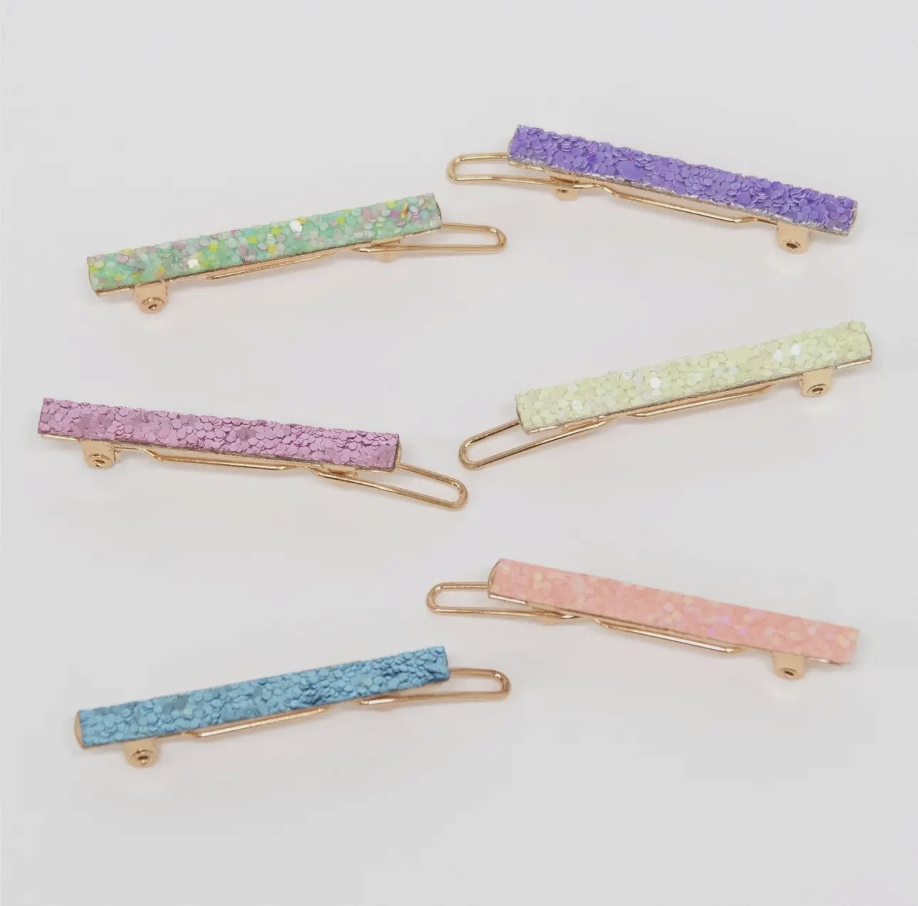 Meri Meri * chunky glitter fabric *gold tone snap clips