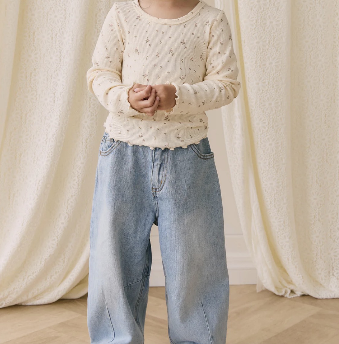 A classic staple with a modern twist, the Sierra Pant - Antique Denim is crafted from 100% cotton, offering breathable comfort and timeless style for your little one. With a relaxed fit and rich dye finish, these pants are perfect for everyday wear, from playdates to family outings. The high-waisted silhouette and soft cotton fabric provide ease of movement while keeping your child cozy. Finished with nickel-free metal accessories and a gentle denim wash, the Sierra Pant is a versatile piece that pairs beautifully with any Jamie Kay top.