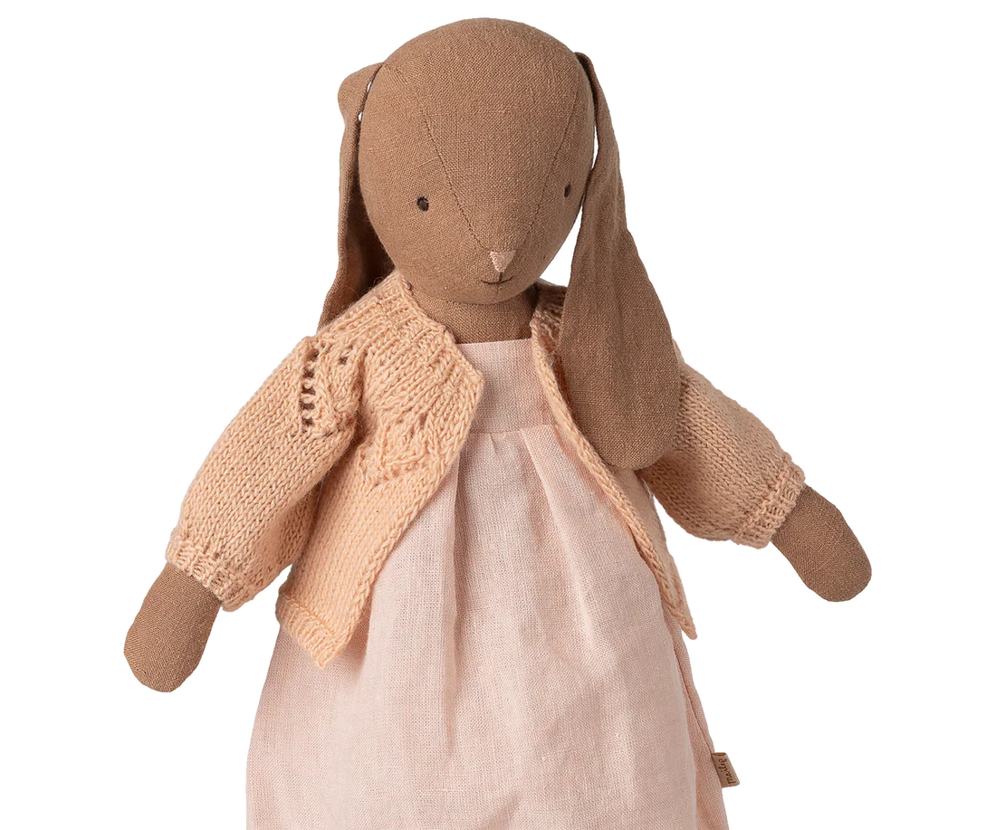 A knitted cardigan for cold days is a must have in any wardrobe. This soft version is perfectly made for your bunny or rabbit in size 3 and will complete any look.