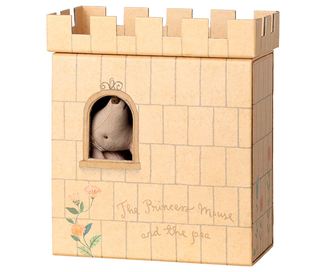 A classic Maileg item. The famous fairytale "the princess and the pea" is the inspiration behind this playset. The set includes a castle with mattresses, a pea and a princess mouse. Combine this set with other mice and accessories for more play.