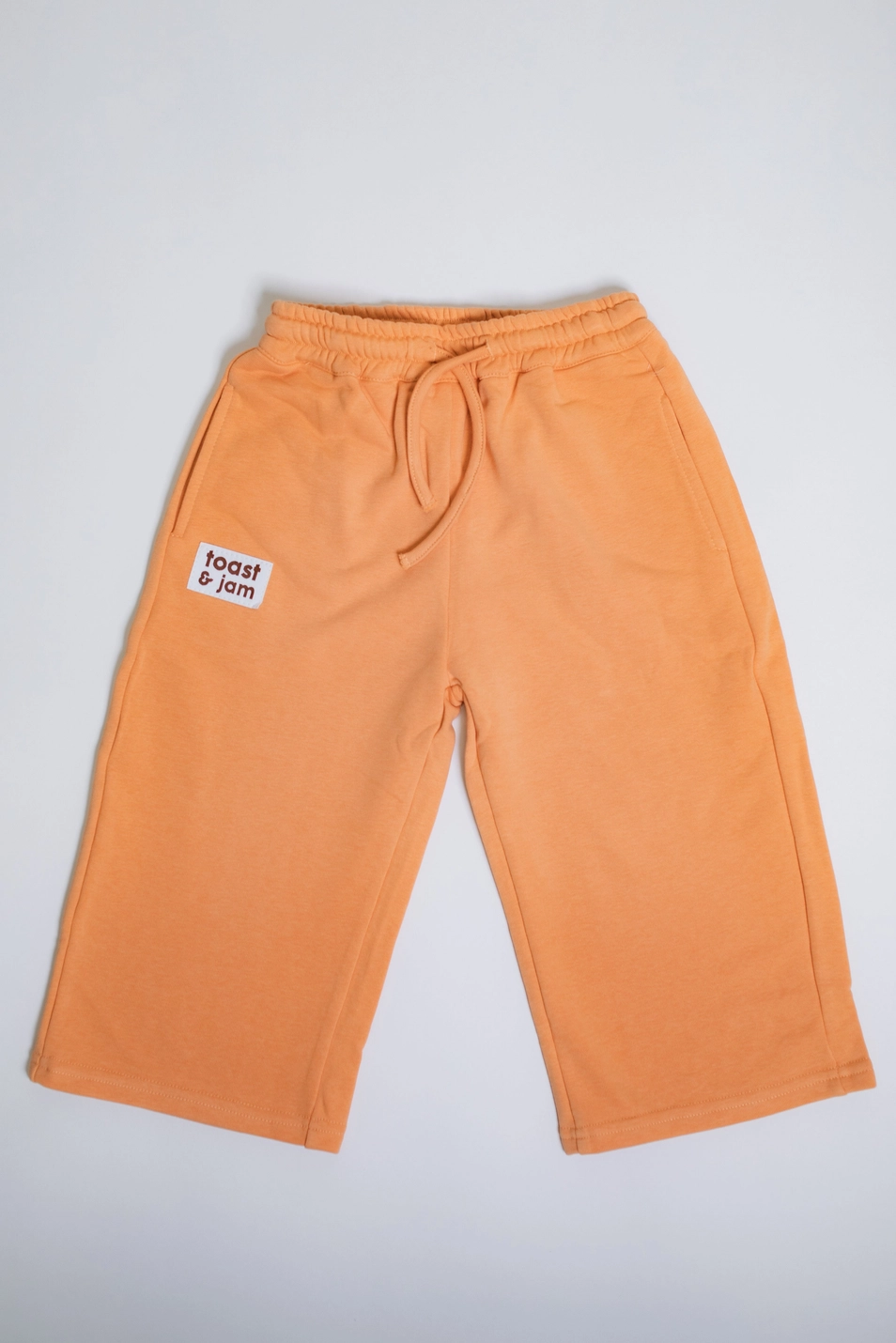 These JUST PEACHY TRACKIES bring comfort and fun together with super soft knit jersey fabric and a retro-inspired wide-leg fit. The bold peach color pops with a playful embroidered patch, while functional pockets add practicality. Featuring a drawstring and elastic waist, they’re perfect for wiggly little ones ready for play and wild adventures all day long.
